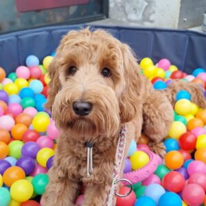 Prince Duke. Stud van Tukkertail Cobbers fokker Australian Cobberdogs. Klein medium formaat wavy fleece vacht. Lief zachtaardig speels